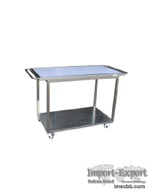 The whole 304 stainless steel material is anti-corrosion, acid-proof and rust- proof. The movable table of the movable pulley is equipped with the movable brake wheel. The bed board is made of phenolic laminated cardboard with uniform density and good X-ray transmittance.