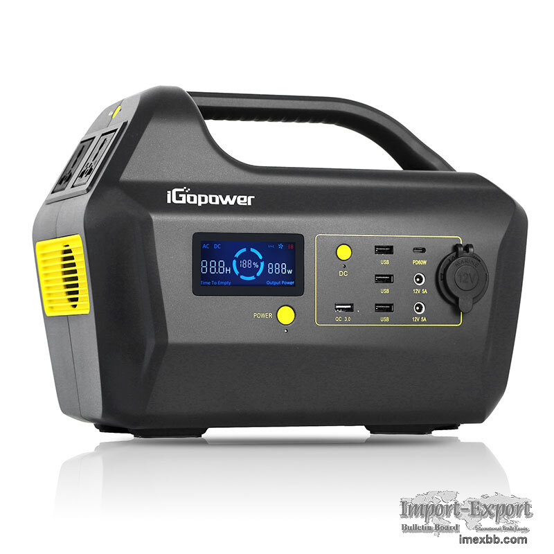 Product Description Eagle - 300W power station, is one of the most outstanding portable power stations in both performance & design. With large capacity 324Wh, 300W rated power (600W surge power) and multiple output charge/ recharge ports, it meets the power supply needs of higher and most power electrical appliances. iGOpower Energy Technology Co., Ltd. Advantage Rich Experience More than 10 years experience in BMS, Power Bank and Power Supplies industry; 3 years production experience in Portable Power Station; Over 200,000pcs portable power station sold to North American, Japan and European market over 3 years since 2018. Quality Guarantee We provide 5 years guarantee with iGOpower brand products. Strictly runned under ISO9001:2015 quality management system, 100% tested & aged by advanced automatic equipments, our defective rate low to 0.3%. OEM/ ODM Service There are more than 35 R & D engineers, and 12 of them are for Portable Power Stations, we are enable to provide you OEM/ODM service. Competitive Price With rich experience in energy storage management system, and manufacturer base, we are confident in providing quality products and competitive price as well.