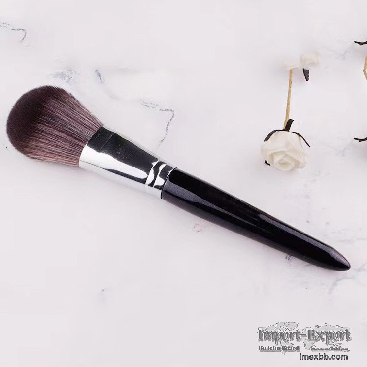 Material Details of Customized Blush Brush High-grade fiber bristles: High-grade fiber bristles Good elasticity, soft and durable texture Delicate and non-irritating to the skin Bright silver aluminum tube: thickened aluminum tube is not easy to deformation, wear-resistant and durable Wooden handle: dark fine glitter brush handle, low-profile and textured