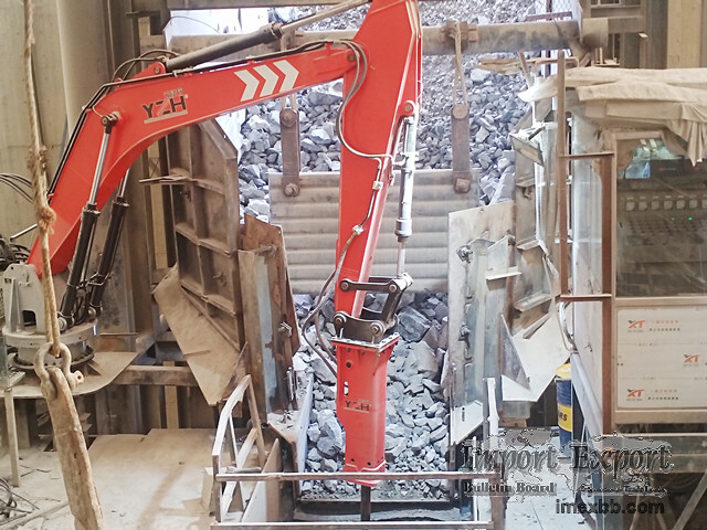 A rockbreaker is a machine designed to manipulate large rocks, including reducing large rocks into smaller rocks. They are typically used in the mining industry to remove oversize rocks that are too large or too hard to be reduced in size by a crusher. Rockbreakers consist of two major components, a hydraulic hammer (used to break rocks) and a boom (the arm). There are two major types of rock breakers, mobile and stationary - typically placed on a pedestal or slew frame.