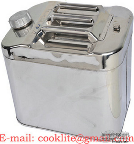 Roestvrij stalen (RVS) jerrycan/benzinecan 20 liter met schenktuit voor opslag en vervoer van brandstof