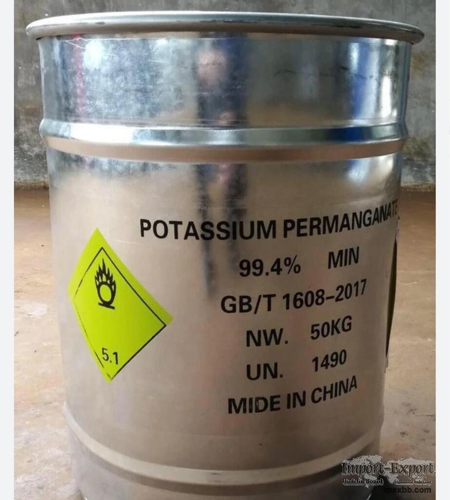 Product name: Potassium Permanganate CAS Number: 7722-64-7 EINECS NO.: 231-760-3 Molecular weight: 158.04 Molecular Formula: KMnO4 Purity (%): ≥99.4% Appearance: Dark purple metallic luster granular Packing: 25kgs/drum or 50kgs/drum
