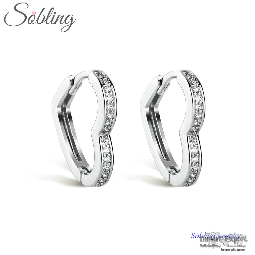 Sobling wholesale 925 sterling Silver AAA CZ Heart shaped Female hoop Earri