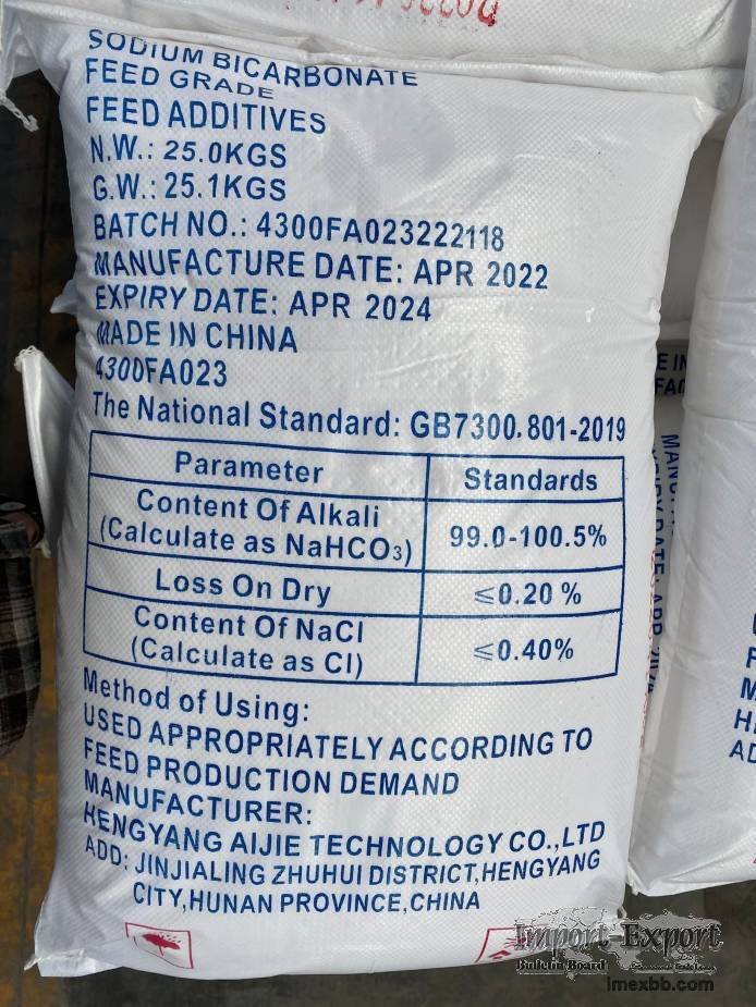 Item: sodium bicarbonate feed grade Appearance:white crystal powder Grade purity: 99% min Hs code: 283630 CAS No.:144-55-8 Standard: GB1886.2-2015 Loading port: Huangpu,Guangzhou Packing: 25kg textile bag with a inside plastic lining or ton bag MOQ: 1 container