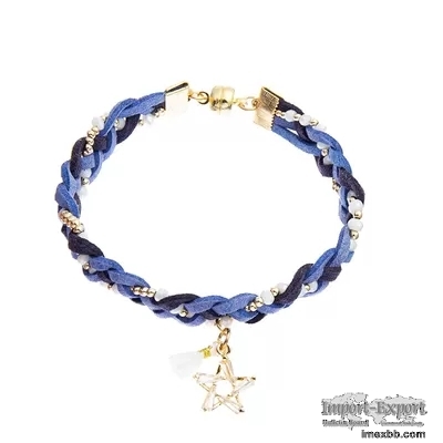 Product Description Multi Color Suede Braide Weaved Star And Tassel Charm Handmade Beads Bracelets With Magnets Wish Bracelets