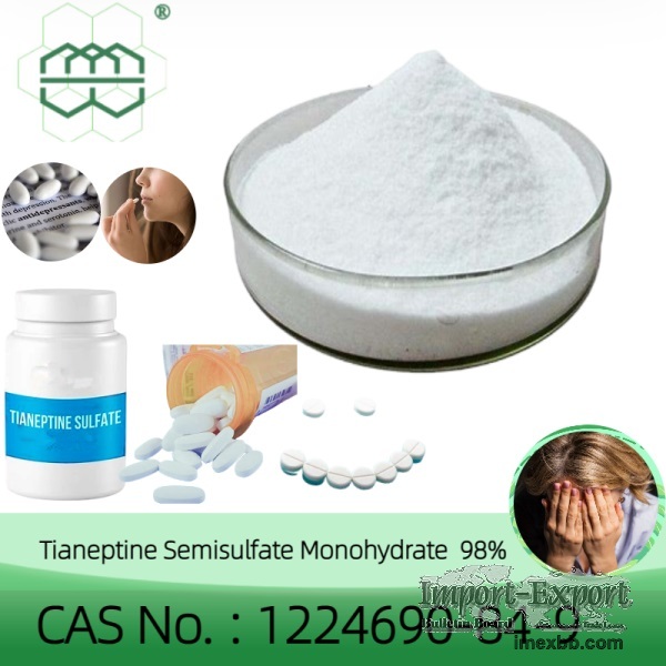 Product name Tianeptine Hemisulfate Monohydrate Other name :tianeptinesulfate; (Thiazepin-11- ylAmino)H , eptanoicAcidSemisulfateMonohydrateTianeptineSemisu , lfateMonohydrate; 7-[(3-Chloro-6,11-dihydro-6-m , ethyl-5,5-dioxidodibenzo[c,f][1,2]thiazepin-11- yl)amino]heptanoicacidsulfatehydrate(2:1:2); T , ianeptinehemisulfatemonohydrate(THM); 7-[(3-Chl , oro-6-methyl-5,5-dioxido-6,11-dihydrodibenzo[c,f][ , 1,2]thiazepin-11- yl)amino]heptanoicacidsulfate , hydrate(2:1:2); Tianeptinehemisulfatehydrate;Th , iazepin-11-ylAmino)HeptanoicAcidSemisulfate; TH , M CAS No.:1224690-84-9 Molecular formula:C21H27ClN2O8S2 Molecular weight:535.02 Purity:98.0% Appearance :White crystal powder Application:Dietary Supplement Raw Material 3.Product introduction Tianeptine Hemisulfate Monohydrate is a selective serotonin reuptake inhibitor (SSRI) and an antidepressant drug. As a non-traditional antidepressant, its mechanism of action is different from that of traditional antidepressants, improving mood and emotional state by enhancing synaptic plasticity of hippocampal neurons. Tianeptine Hemisulfate Monohydrate is also used to treat anxiety and mood disorders. Tianeptine Hemisulfate Monohydrate is widely used in medical research, especially in the development of antidepressants. It is also being researched for use in neurodegenerative diseases, pain management, and addiction treatment. The efficacy of Tianeptine Hemisulfate Monohydrate has been widely studied and confirmed, and it has been approved for the treatment of depression in multiple countries. It should be noted that while Tianeptine Hemisulfate Monohydrate has been proven to be an effective antidepressant in clinical applications, it is classified as a controlled substance in some countries, with restrictions on its use and sale. Anyone using or purchasing Tianeptine Hemisulfate Monohydrate should be aware of the relevant laws and regulations in their country. 4.Features (1) Unique mechanism of action: Tianeptine Hemisulfate Monohydrate is a selective serotonin reuptake enhancer (SSRE), which means it enhances the reuptake of serotonin in the brain, leading to increased synaptic plasticity and mood improvement. This mechanism of action is different from traditional antidepressants, which are usually serotonin reuptake inhibitors (SSRIs). (2) Rapid onset of action: Tianeptine Hemisulfate Monohydrate has a fast onset of action, with clinical studies showing improvements in depressive symptoms as early as one week after treatment initiation. (3) Improved cognitive function: Tianeptine Hemisulfate Monohydrate has been shown to improve cognitive function in patients with major depressive disorder, such as memory and attention. (4) Low addiction potential: Unlike other antidepressants, Tianeptine Hemisulfate Monohydrate has a low addiction potential and does not cause withdrawal symptoms when discontinued. This is because it does not target the dopamine system, which is associated with addiction and dependence. (5) Treatment of anxiety disorders: Tianeptine Hemisulfate Monohydrate has been shown to have anxiolytic effects, making it a potential treatment for anxiety disorders such as generalized anxiety disorder and social anxiety disorder. 5.Applications Tianeptine Hemisulfate Monohydrate is a widely used pharmaceutical chemical in clinical and research fields. As an antidepressant drug, it has been approved in multiple countries for the treatment of depression, anxiety, mood disorders, and other related illnesses. In addition, Tianeptine Hemisulfate Monohydrate has been studied for its potential in treating neurodegenerative diseases such as Alzheimer's, pain management, and addiction treatment. In recent years, Tianeptine Hemisulfate Monohydrate has gained increasing popularity in medical research, especially in the development of antidepressant drugs. With more studies confirming its therapeutic effects, its application prospects are gradually becoming apparent. Tianeptine Hemisulfate Monohydrate may become a multi-functional drug for treating various neurological disorders in the future. Moreover, Tianeptine Hemisulfate Monohydrate also has potential applications in other fields. A recent study showed that Tianeptine Hemisulfate Monohydrate may have the potential to treat post-stroke neurofunctional disorders. Additionally, some studies suggest that Tianeptine Hemisulfate Monohydrate may be beneficial for metabolic diseases such as obesity and diabetes.