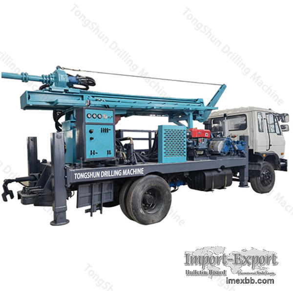 TSHY-800 Truck Mounted Wate Well Drilling Rig Product Description The Fusion of Portability and Efficiency Portability Advantage: Adaptable to changing job sites, our water well drilling rig is the ideal choice for your projects. Lightweight, easily transportable, and quick to deploy, it enables rapid drilling operations within short time frames. Flexibility and Adaptability: Whether in rural or urban settings, our water well drill pipe well drilling rig navigates various terrains and environments with ease. Its efficient operational performance makes it the preferred choice for narrow spaces and irregular terrains. Cost-effectiveness: Providing efficient drilling at an affordable price, our water well drill pipe well drilling rig offers a competitive solution for small-scale projects or those requiring flexibility. Technological Innovation and Support: Beyond delivering high-performance, our rig comes with professional technical support and customization options. Our technical team ensures the efficient and safe completion of your drilling tasks. Truck Mounted Wate Well Drilling Rig Product Features Versatile Drilling Capability: Drilling diameter range 115-650mm. Enhanced Efficiency: Drilling depth 800m; Penetration efficiency 15-35 m/h. Adaptive Specifications: Drill pipe diameter 102mm, 108mm, 114mm; Length 2.0m, 3.0m, 4.5m, 6.0m. Specifications Equipped capacitor 132kW Using air pressure 1.7-3.5MPa Dimension 8400×2500×3100mm Climbing angles 30Max. Swing torque 8500-17000 N.m Rig lifting force 30T Car engine Cummins EQ6BT5.9 ,Six-Cylinder Diesel 190 HP
