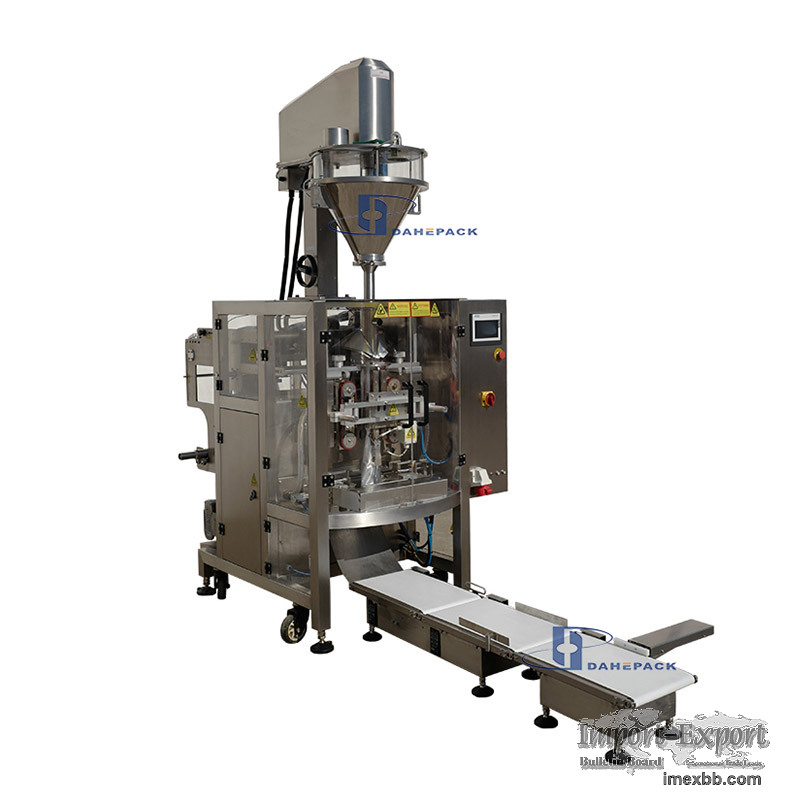 Powder Packing Machine Introduction This machine is built to manage different sized packages, product fill weight, and desired number of bags per minute. They loaded with a continuous flat roll of plastic film, which has had artwork applied to the exterior of the film. The machine constructs plastic bags from a long flat roll of plastic film and simultaneously fills the bags with product and seals them. Bag Filling Machine features 1.Full-automatic Measure-Form-Fill-Seal type, efficient and simple to use. The machine do the work measuring, bag-making, filling, sealing, date-printing, finished product outputting are all completed automatically. 2. Auger filler for the product measure, suitable for all kinds of powder and granules. Replacing the auger dosing tool for filling different product weight. 3. Siemens PLC and Siemens touch screen, easy to operate.