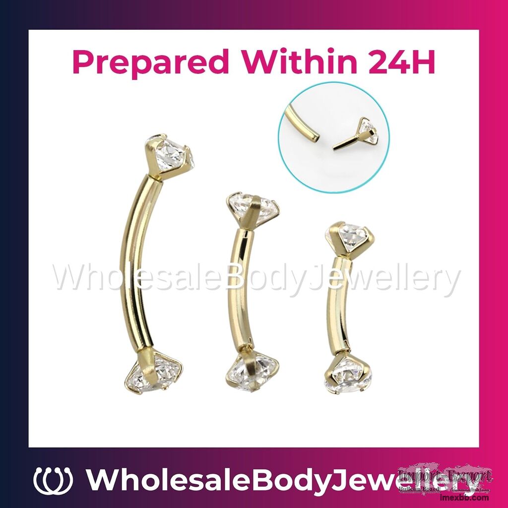 Wholesale Gold Eyebrow Bananas with CZ StonesPremium wholesale body jewellery internally threaded eyebrow bananas Minimum Order: 1 pieces SOURCE: Import-Export Bulletin Board (https://www.imexbb.com/)
