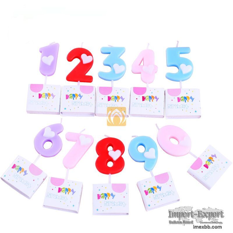 Wholesale Unique Love Heart Printed Birthday Numbers Candles
