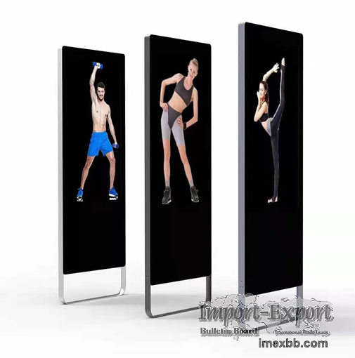When turned off, it is an ordinary mirror, and when turned on, through the entire screen with an OLED commercial signage display function, the experiencer can follow a professional instructor to work out and see his or her movements, compare and correct them with the video.