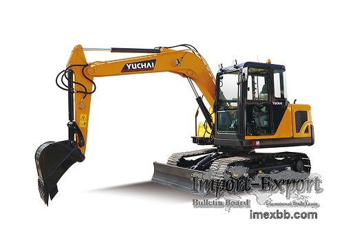 1.Structural Reliability 2.Excellent Performance 3.Fuel saving and high efficiency 4.Brand new large cabin 5.Comfortable driving experience 6.Convenient maintenance International brand engine It is equipped with Yanmar 4TNV98C naturally aspirated engine, with an approved power of 44.4kW/2100rpm. Fuel-saving, low noise, sufficient power, low emission, and compliance with emission regulations. Maximum excavation force at the same level The maximum traction force of YC80 small excavator is 68kN, the digging force of bucket is 56KN, and the digging force of stick is 38KN, which ensures the effective exertion of strong digging force and makes the digging and hoisting more stable. Higher energy efficiency ratio Better fuel efficiency: In the common speed range, the average efficiency of Yuchai YC80 is about 19% higher than that of the industry benchmark model
